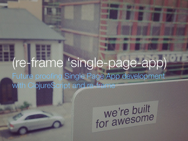 re-frame is a wrapper (over a wrapper) over react and gives developers a simple deterministic way to deliver rich single page applications. Being impressively buzzword compliant, it brings together the best of react, redux, Elm and other ideas that have taken the SPA world by storm. re-frame delivers a data oriented approach to designing and building your next application.