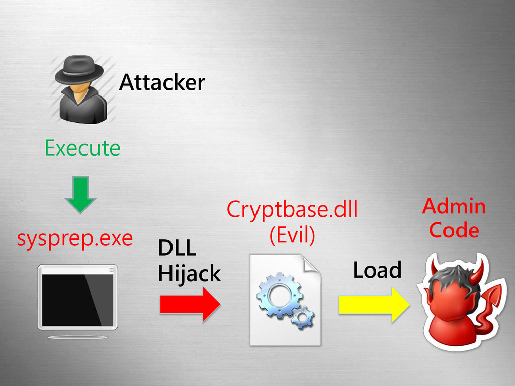 Execute DLL Hijack Cryptbase.dll (Evil) Load Admin Code sysprep.exe Attacker