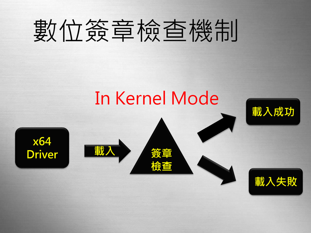 數位簽章檢查機制 In Kernel Mode x64 Driver 載入 簽章 檢查 載入成功
