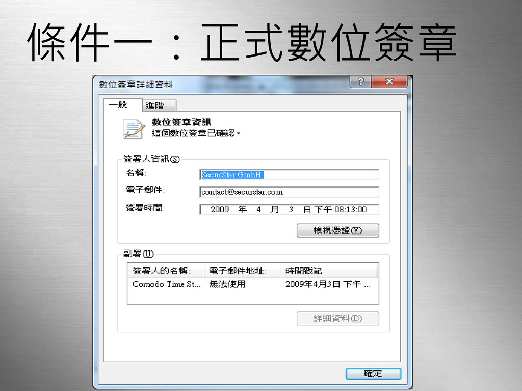 條件一:正式數位簽章