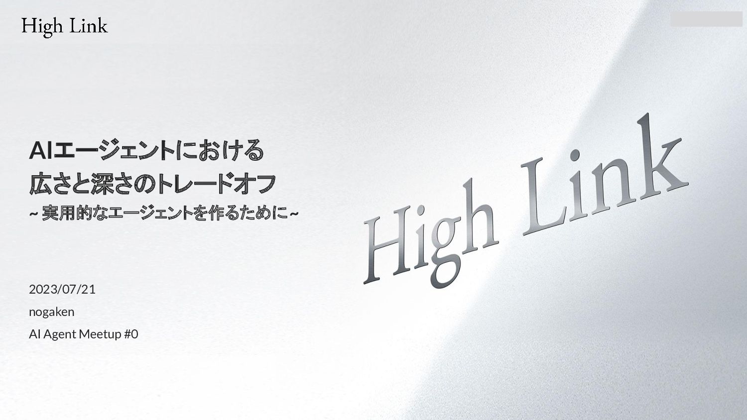 Confidential AIエージェントにおける 広さと深さのトレードオフ ~ 実用的なエージェントを作るために~ 2023/07/21 nogaken AI Agent Meetup