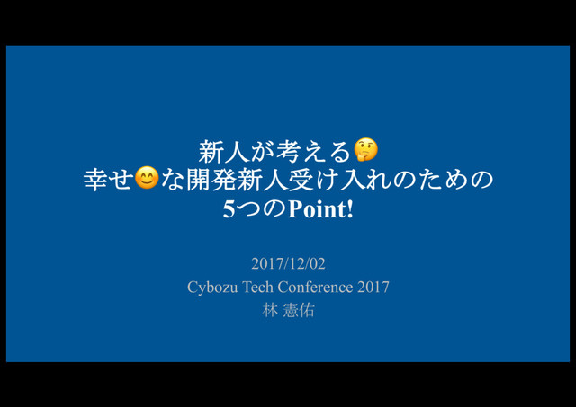 新人が考える 幸せな開発新人受け入れのための 5つのPoint! 2017/12/02 Cybozu Tech Conference 2017 林 憲佑