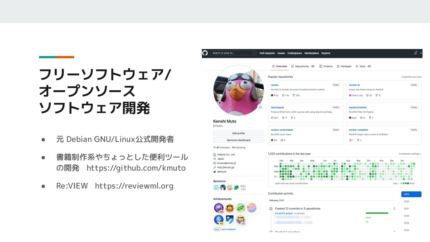 https://github.com/kmuto • Re:VIEW https://reviewml.org