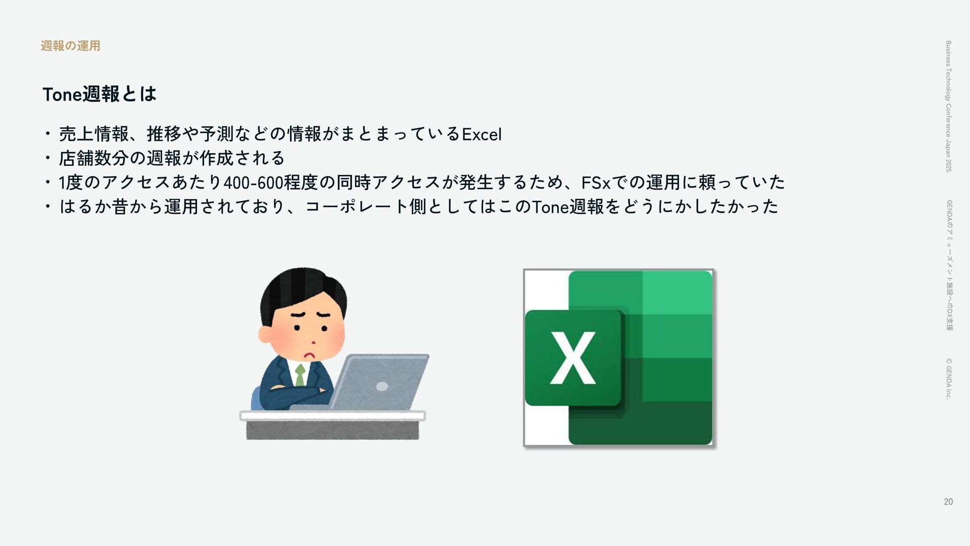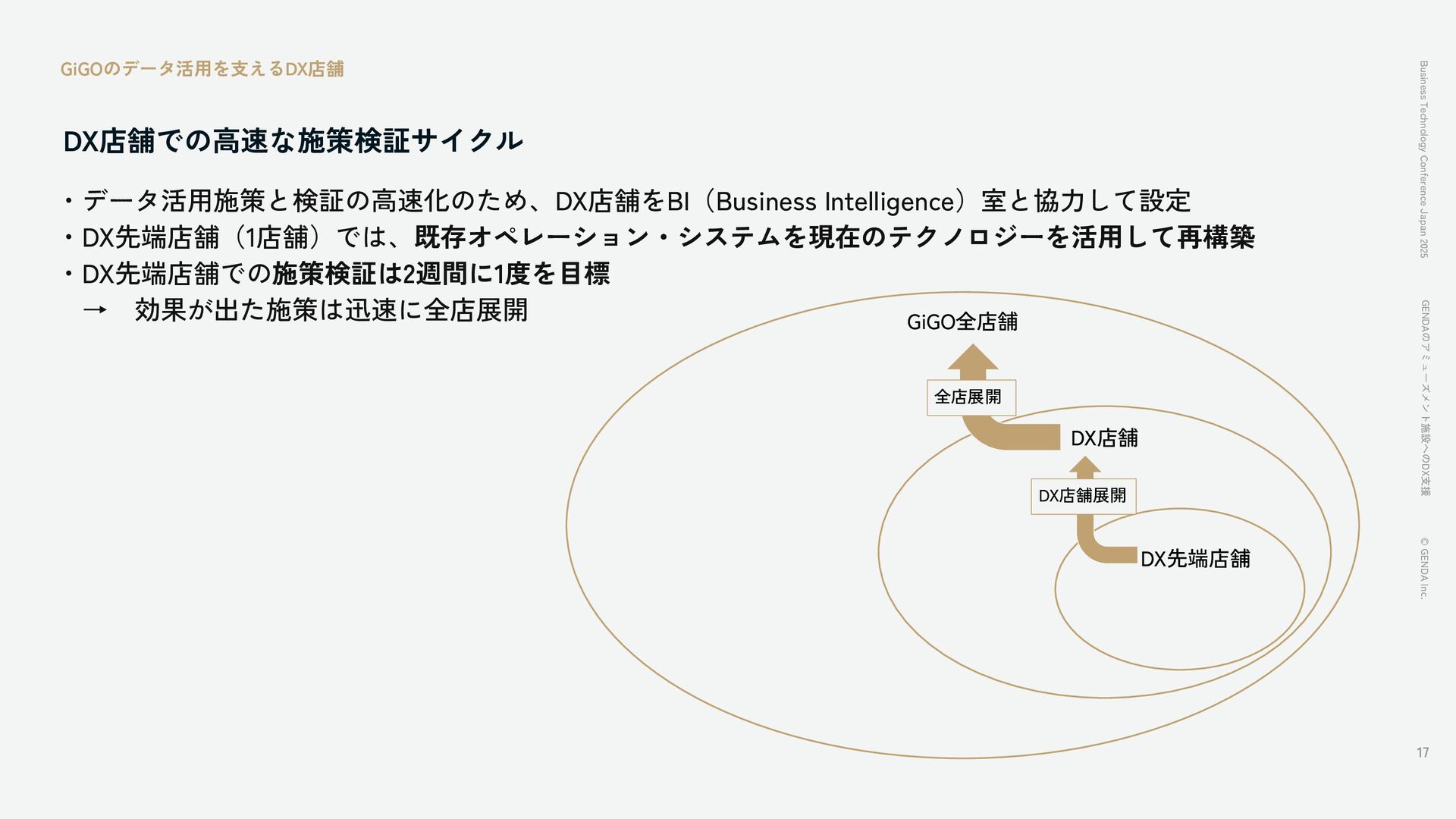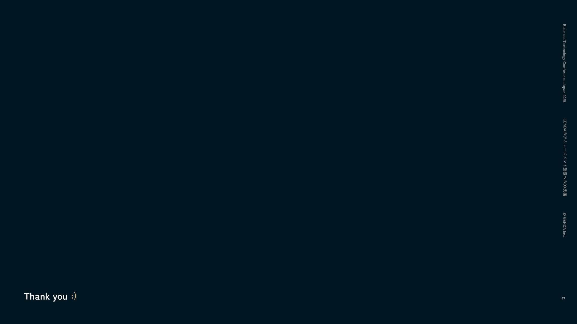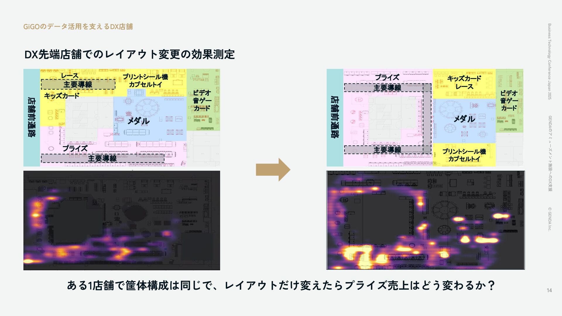 今後のDX支援について 今後の展望 GiGOリンク × GiGO NAVI ラズパイなどを利用した装置の開発 認証基盤やストレージの見直し、廃止や再構築の実施 ・GiGOリンクはNFCを利用しているためGiGO NAVIと連携できないかというのが発端 ・NFC読み取り機能のあるAndroidタブレットを現在提案中 ・在庫管理や棚卸しなど、タブレットを利用した店舗業務の簡略化 ・“かざすだけ”で簡単、教育コストも減り負荷もかからない ・無いなら作ってしまおうという発想 ・AIやアミューズメント施設ならではの機械に詳しい方々と一緒に実施 ・電気の流れから電波制御、アドバタイズ通信を利用したデータ収集の機械などを開発中 ・3Dプリンターもあるため自前で機器に取り付ける機構などのデザインも内製で実施 ・ボトルネックだったExcelの運用が廃止になったことによるシステム設計の実施 ・認証基盤、ストレージ、ネットワーク、端末、ライセンスにおける全ての“無駄”を無くす ・その他バックオフィス系の基幹システム、人事システムなども合わせて見直しが可能となった ・店舗運営者側ともコミュニケーションを取りながら進めていく