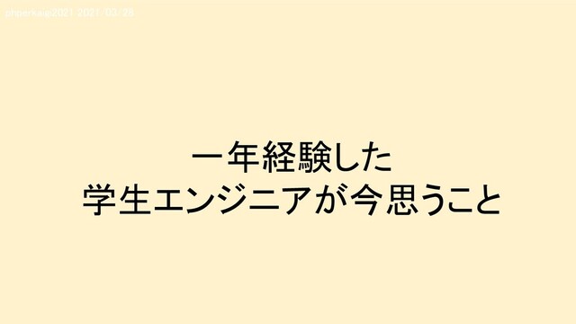 一年経験した 学生エンジニアが今思うこと phperkaigi2021 2021/03/28