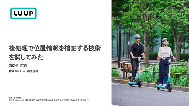 機密・専有情報 株式会社Luupによる個別の明示的な承諾を得ることなく、この資料を使用することを固く禁じます。 株式会社Luup 高原健輔 2024/12/05 後処理で位置情報を補正する技術 を試してみた