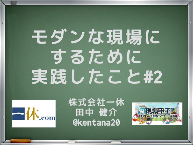 おわりに •一休ではエンジニアを積極採用中で す!! •現場改善に積極的に加わりたい方 •「新しい価値を提供し続ける」ことに興味が ある方 •ご興味のある方は @kentana20 までご連絡を •まずはオフィス内外でカフェでもしましょう
