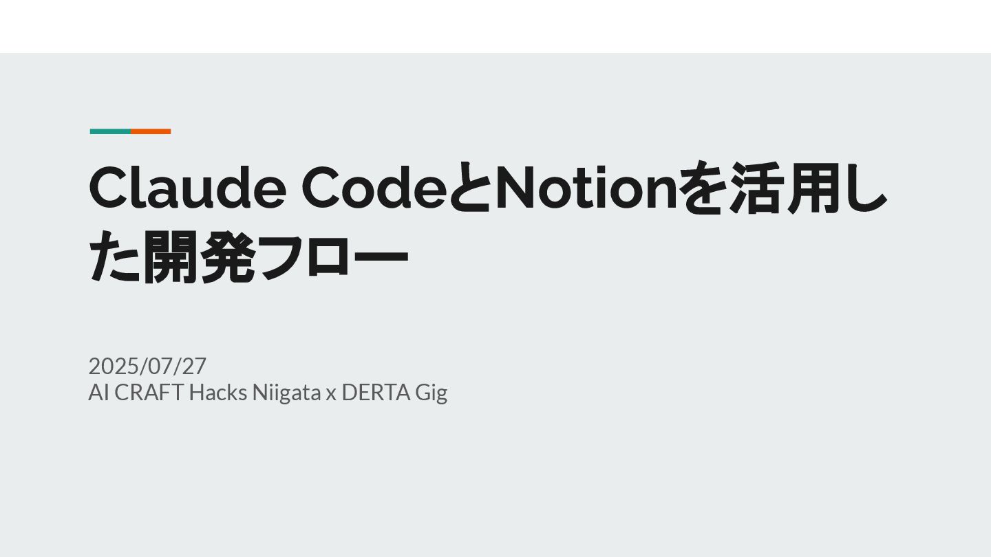 Claude CodeとNotionを活用し た開発フロー 2025/07/27 AI CRAFT Hacks Niigata x DERTA