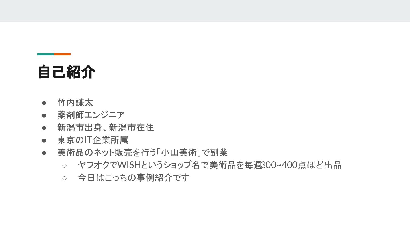 美術品のネット販売を行う「小山美術」で副業 ◦ ヤフオクでWISHというショップ名で美術品を毎週 300~400点ほど出品 ◦ 今日はこっちの事例紹介です