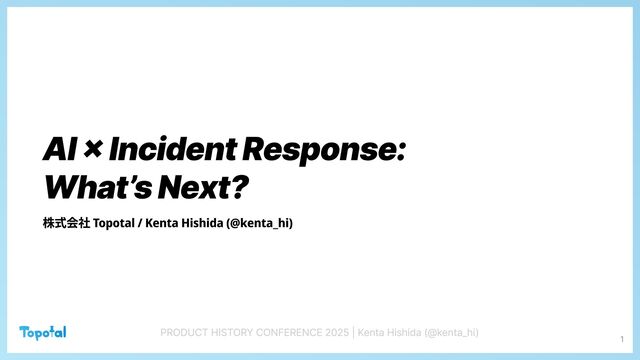 AI × Incident Response: What’s Next? 株式会社 Topotal / Kenta