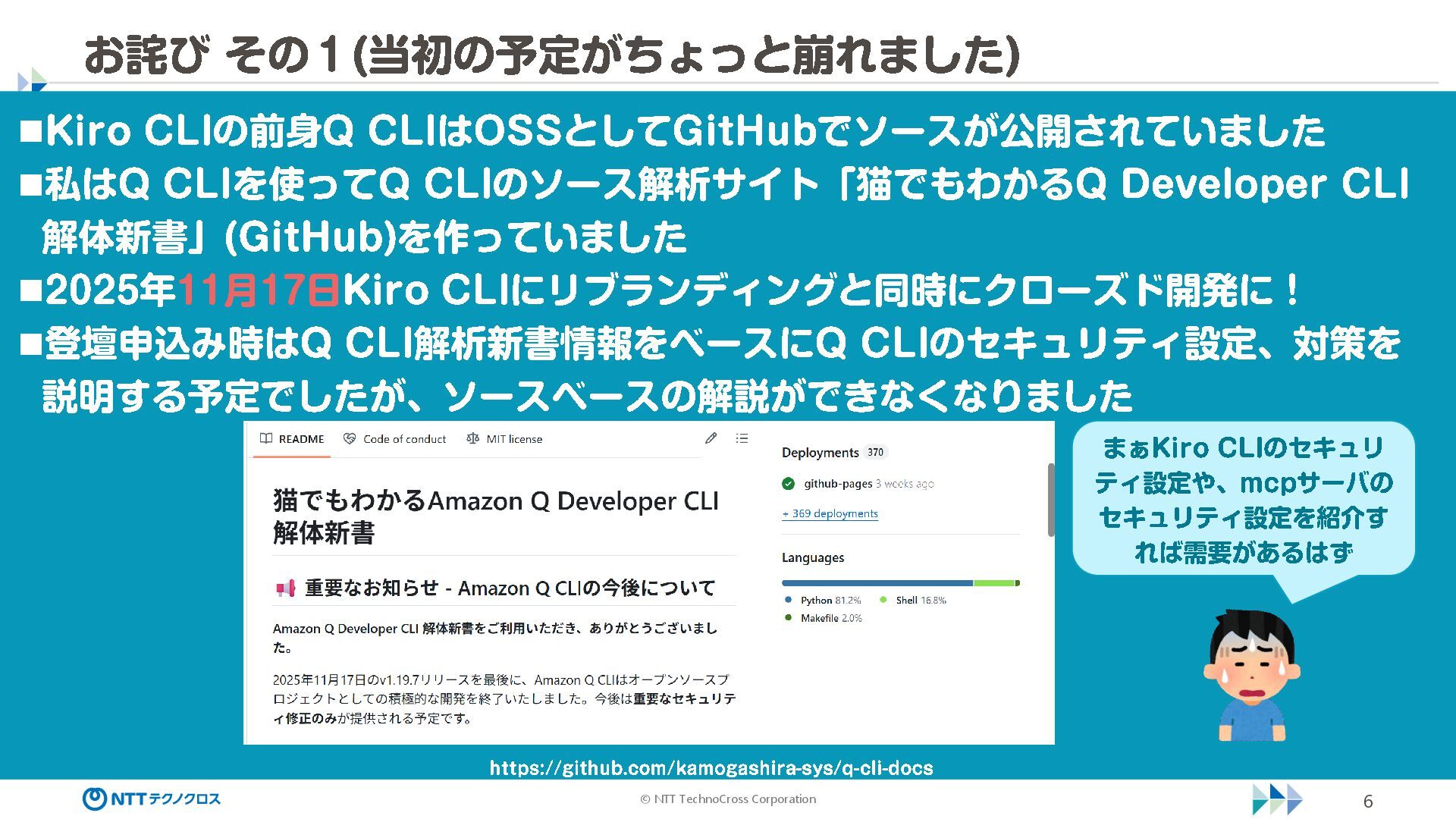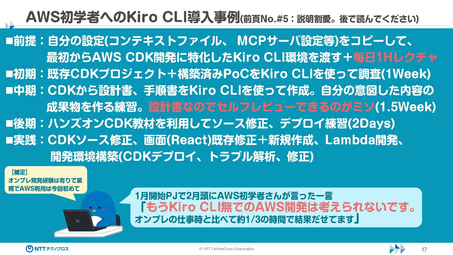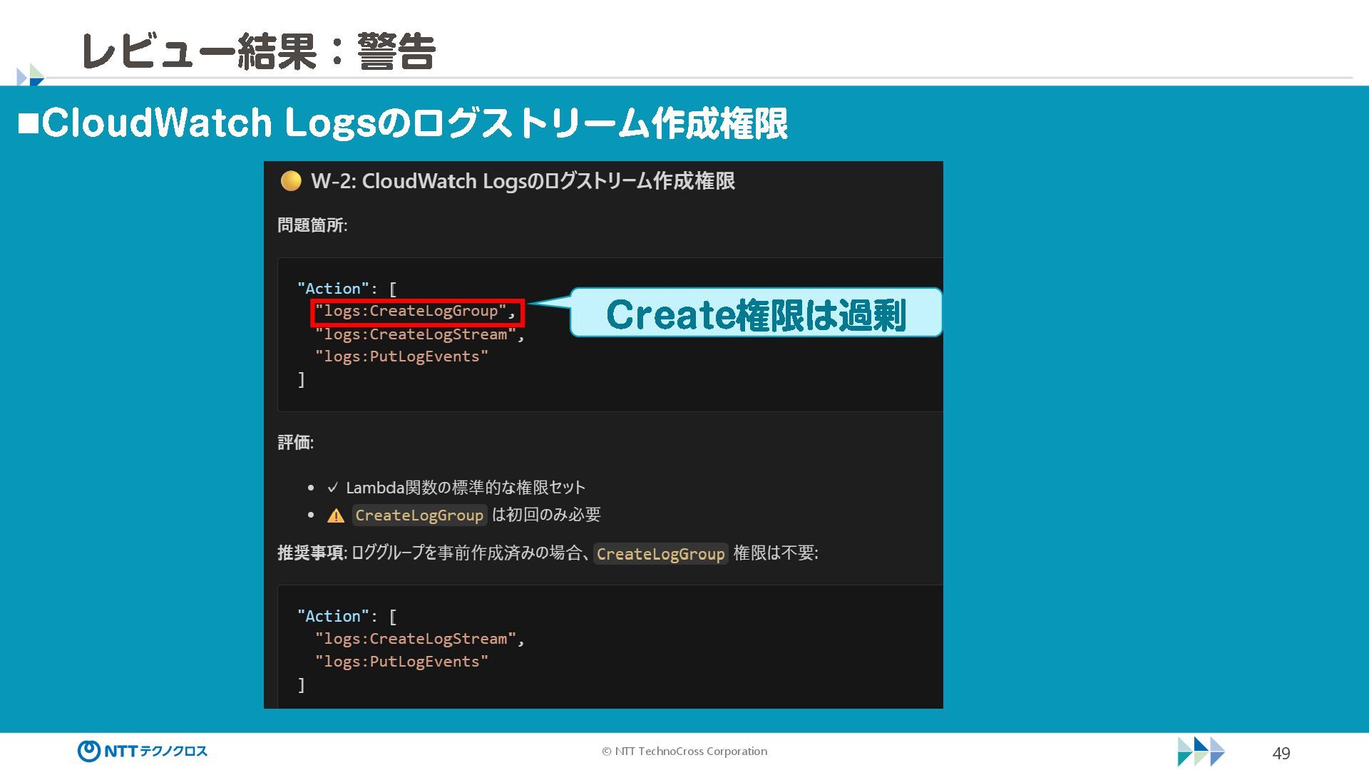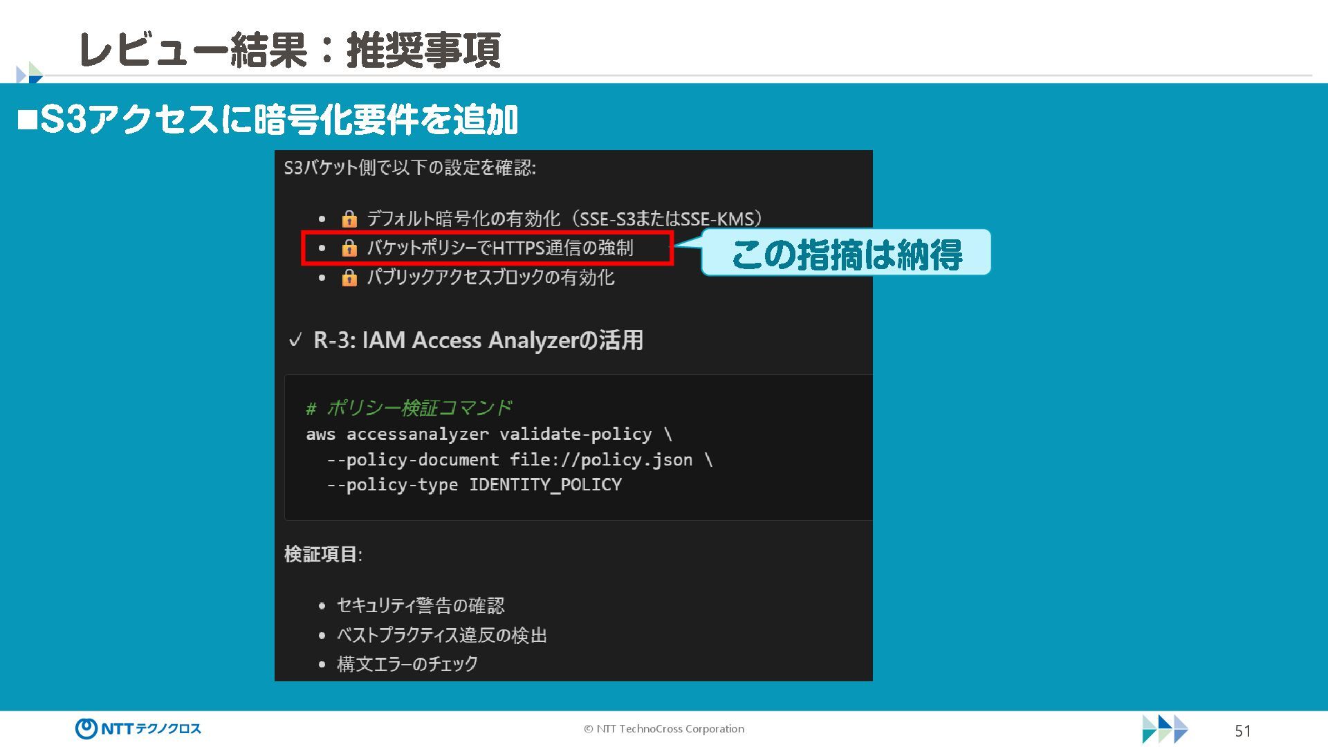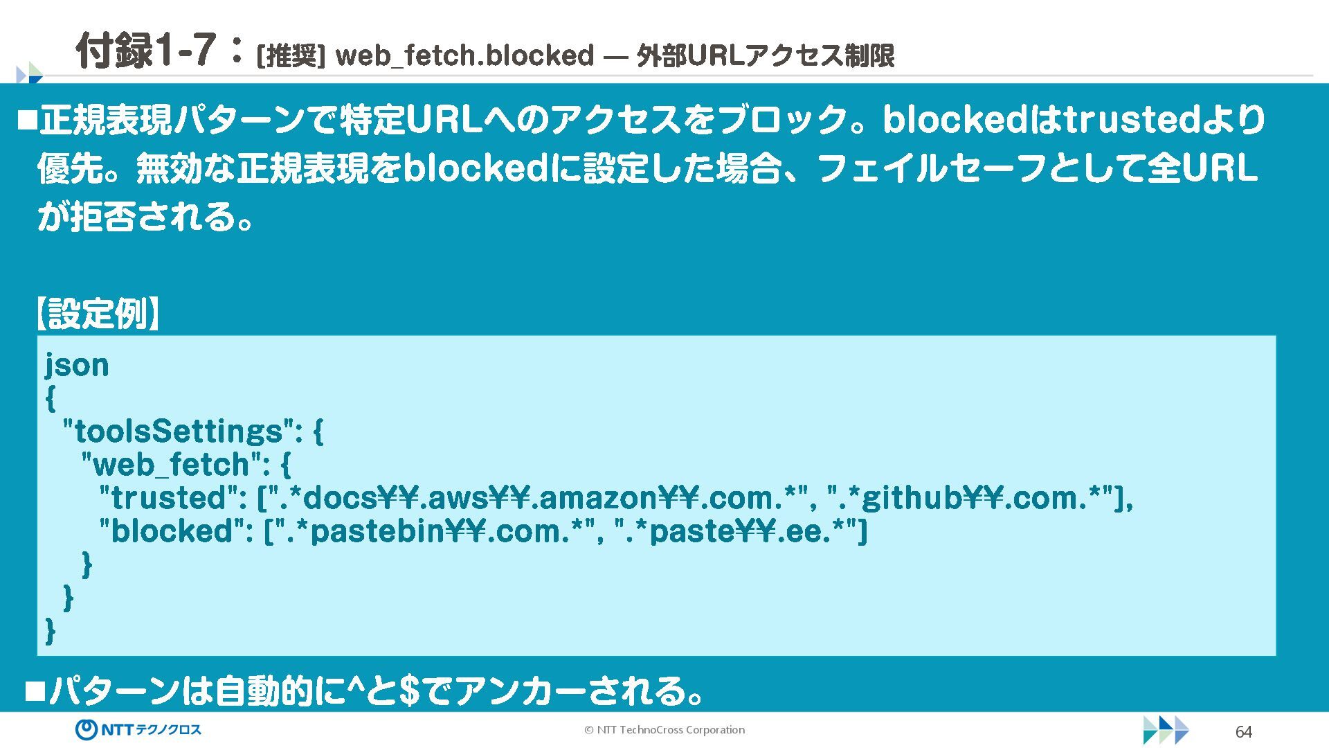 (sec -review.json) "glob": { "allowedPaths": [ "~/ai -work", "~/ai -plan" ], "allowReadOnly": true } }, "mcpServers": { "aws -mcp": { "command": "uvx", "timeout": 30000, "args": [ "mcp -proxy -for -aws@latest", "https://aws -mcp.us -east -1.api.aws/mcp", "-- metadata", "AWS_REGION=us -west -2" ] } }, "hooks": { "postToolUse": [ { "matcher": "@aws -mcp/*", "command": "echo ¥ "[$(TZ=Asia/Tokyo date '+%Y -%m - %d %H:%M:%S')] AWS MCP tool used: $TOOL_NAME ¥ " >> ~/ai - work/tool -usage.log", "description": "AWS MCP ツール使用履歴を記録 " } ] } } { "$schema": "https://raw.githubusercontent.com/aws/amazon -q - developer -cli/refs/heads/main/schemas/agent -v1.json", "name": "sec -review", "description": "AWS セキュリティレビュー専門家(学習用・最小構成) ", "prompt": "file://~/.kiro/prompts/sec -review -prompt.txt", "tools": [ "fs_read", "fs_write", "grep", "glob" ], "allowedTools": [ "fs_read", "grep", "glob" ], "toolsSettings": { "fs_write": { "allowedPaths": [ "~/ai -work/**", "~/ai -plan/**" ] }, "grep": { "allowedPaths": [ "~/ai -work", "~/ai -plan" ], "allowReadOnly": true },
