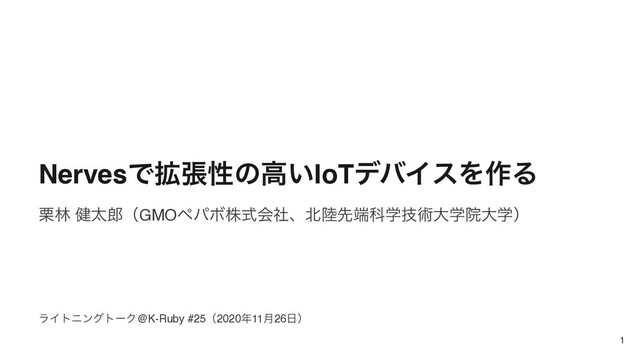 NervesͰ֦ுੑͷߴ͍IoTσόΠεΛ࡞Δ ܀ྛ ݈ଠʢGMOϖύϘגࣜձࣾɺઌՊֶٕज़େֶӃେֶʣ ϥΠτχϯάτʔΫ@K-Ruby #25ʢ202011݄26ʣ 1