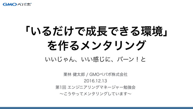 ͍͍͡ΌΜɺ͍͍ײ͡ʹɺόʔϯʂͱ ܀ྛ݈ଠ(.0ϖύϘגࣜձࣾ ୈճΤϯδχΞϦϯάϚωʔδϟʔษڧձ ʙ͜͏ͬͯϝϯλϦϯά͍ͯ͠·͢ʙ ʮ͍Δ͚ͩͰͰ͖Δڥʯ Λ࡞ΔϝϯλϦϯά