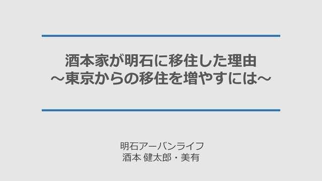 明石アーバンライフ 酒本 健太郎・美有 酒本家が明石に移住した理由 ~東京からの移住を増やすには~