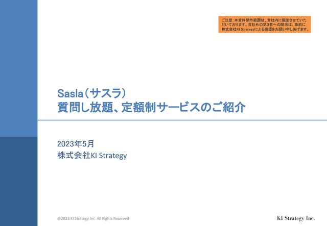 Sasla(サスラ) 質問し放題、定額制サービスのご紹介 2023年5月 株式会社KI Strategy @2023 KI Strategy Inc All