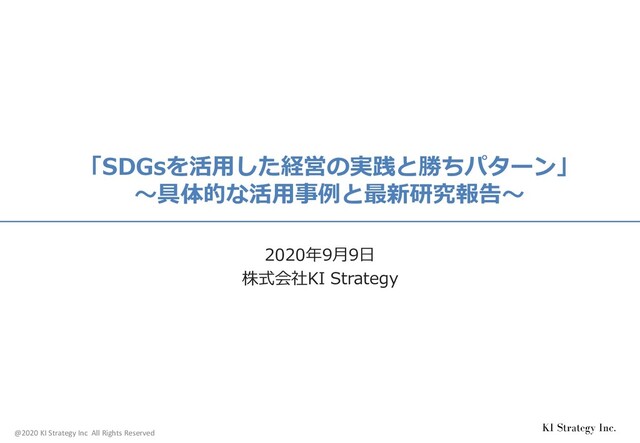 4. @2020 KI Strategy Inc All Rights Reserved 7 1.SDGsとは? SDGsは、企業・団体の、規模の大小に関わらず、企業経営においても活用できる特