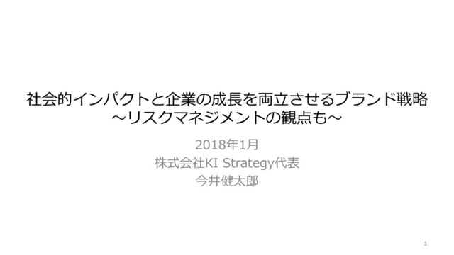 社会的インパクトと企業の成長を両立させるブランド戦略 ~リスクマネジメントの観点も~ 1 2018年1月 株式会社KI Strategy代表 今井健太郎