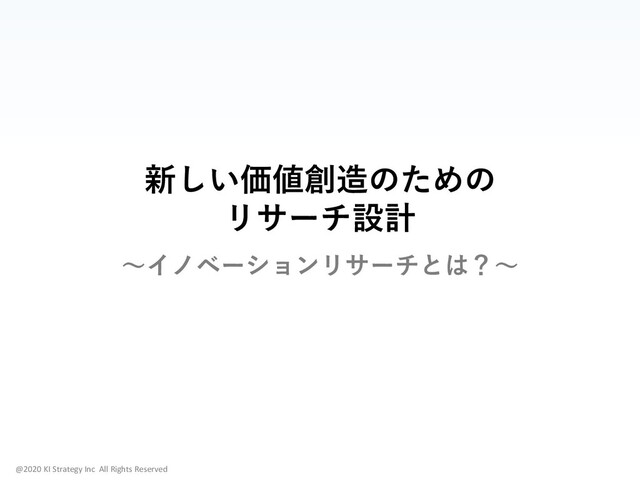 8. @2020 KI Strategy Inc All Rights Reserved 小休止1 「リサーチは、選択肢や可能性を広げる ための活動である」