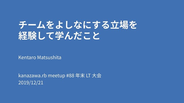 チームをよしなにする⽴場を 経験して学んだこと Kentaro Matsushita kanazawa.rb meetup #88 年末 LT ⼤会