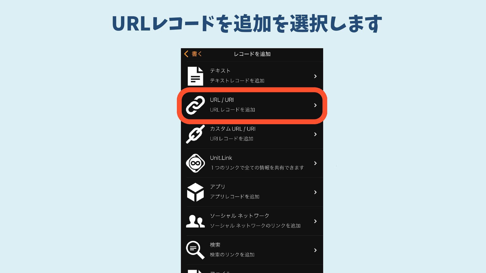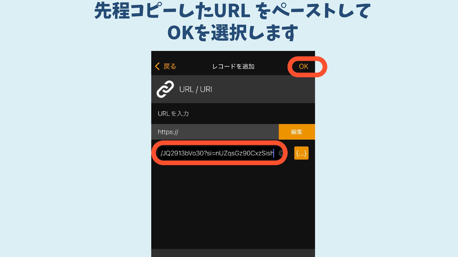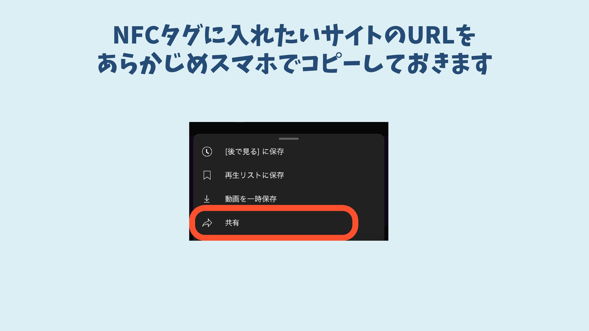 NFCタグに入れたいサイトのURLを あらかじめスマホでコピーしておきます