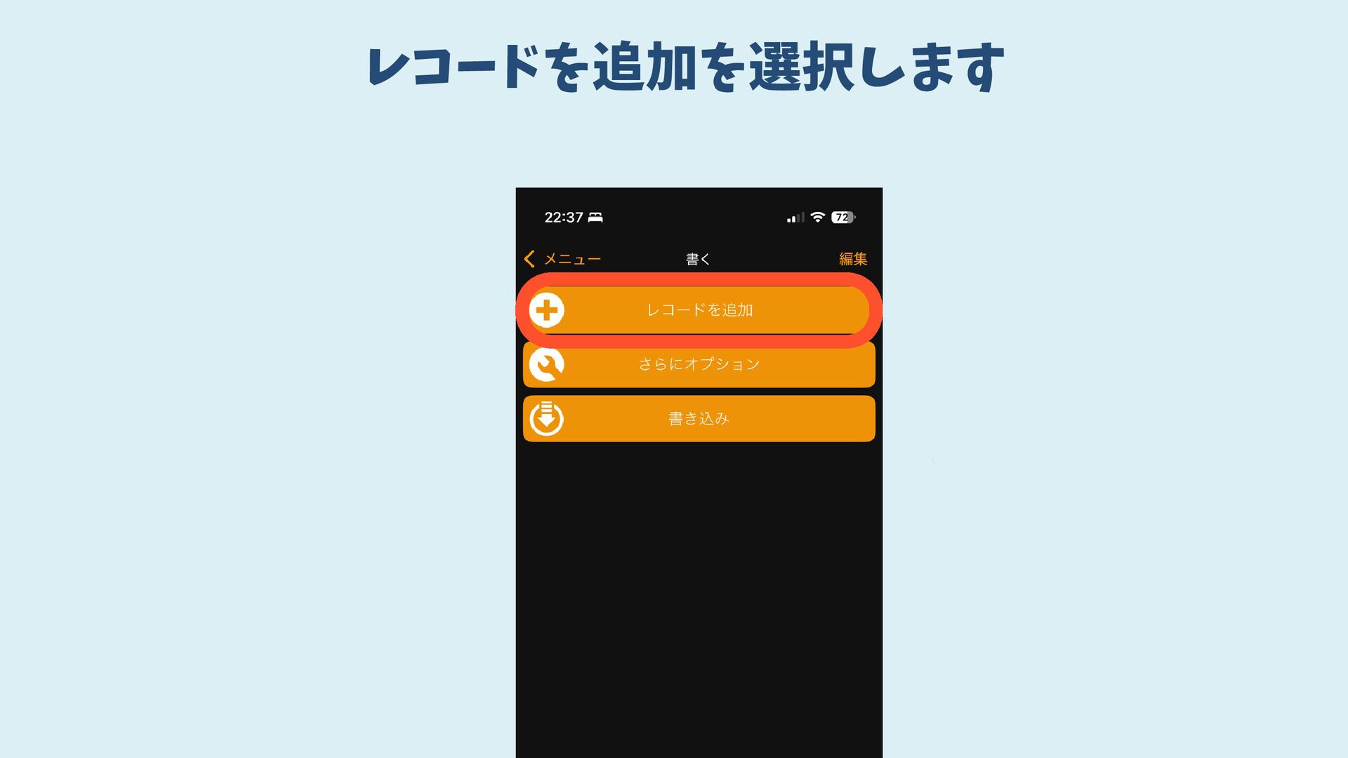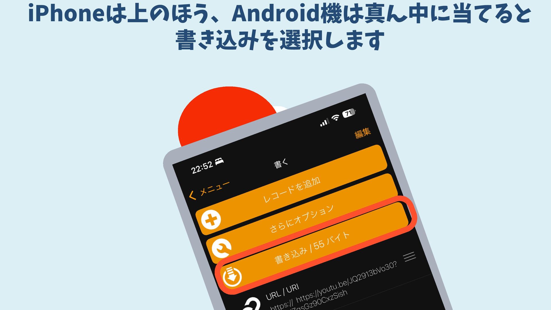 iPhoneは上のほう、Android機は真ん中に当てると 書き込みを選択します