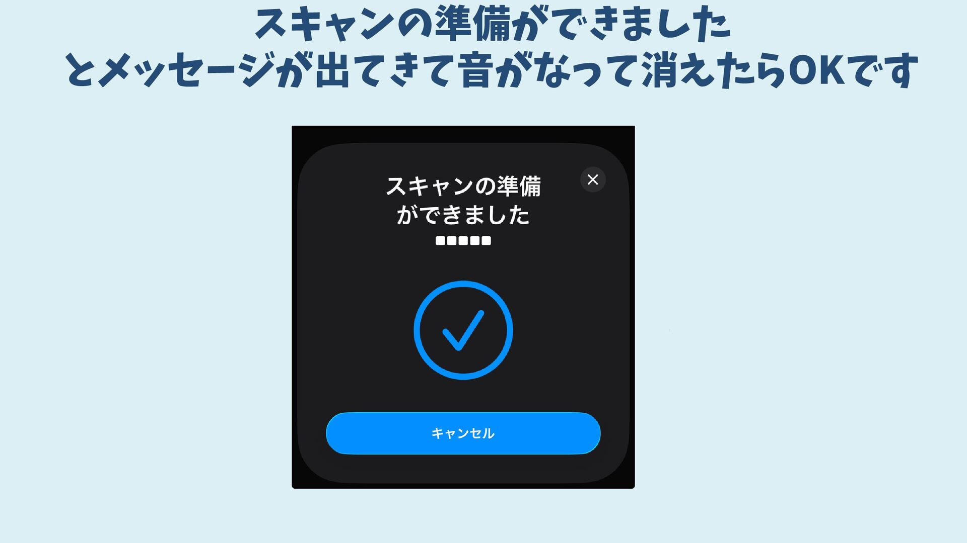 スキャンの準備ができました とメッセージが出てきて音がなって消えたらOKです