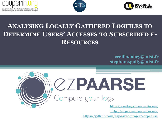 Speech done at ICOLC at Lisbonne about ezPAARSE/AnalogIST project.