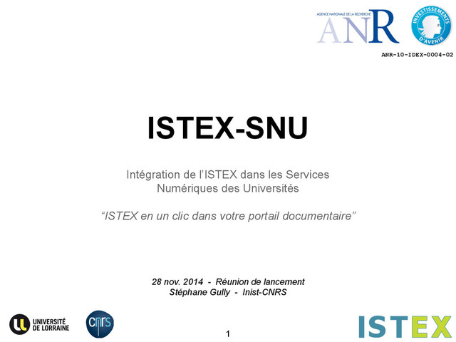 de Stéphane Gully (INIST-CNRS) à l’Université de Lorraine (décembre 2014 => février 2015). Immersion dans la “sous direction des usages du numérique” (Julien Marchal) en relation forte avec la “direction de la documentation et de l'édition” (Anne- Pascale Parret, Jean-François Lutz, Thomas Jouneau) 3