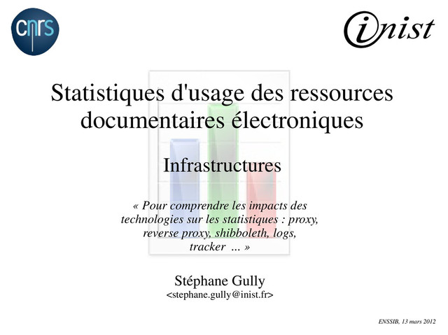 logs au niveau ESR • Mutualisation des bases de connaissances (référentiels id éditeurs) • Interopérabilité avec les référentiels des SI • Reconnaissances jusqu'aux articles • Consolidation avec récupération des stats éditeurs (SUSHI) • Prototypage de systèmes de tracker sur les sites des éditeurs (à contractualiser ?)