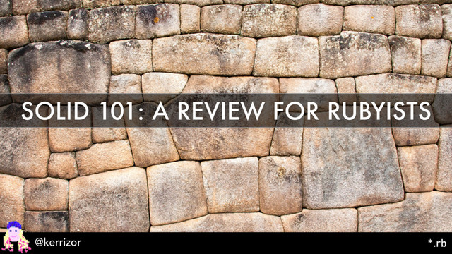 SOLID is an acronym that tries to capture the first 5 principles of object-oriented programming and design, as enumerated by Michael Feathers and Robert Martin. Most Rubyists are probably familiar with one or two, but do you know what the rest are? Let's review them, see them in action, and learn how they can help us create maintainable, extensible, and comprehensible software.