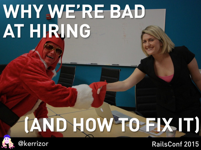 An interview too often feels like a first date - awkward, strange, and not entirely predictive of what’s to follow. There are countless books and websites to help you when you’re a job seeker, but what about when you’re the one doing the hiring? Will you just ask the same puzzle questions or sort algorithm problems? What are your metrics for evaluating or contextualizing the answers? In this talk, I’ll describe successful practices and techniques to help you find someone who will innovate your business, bring new energy to your team, get the work done, AND be someone you’ll want to work with.