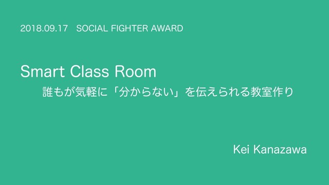 第1回SOCIAL FIGHTER AWARDに応募したプロダクト「Smart Class Room」のプレゼンテーションです。 https://socialfighter.jp/