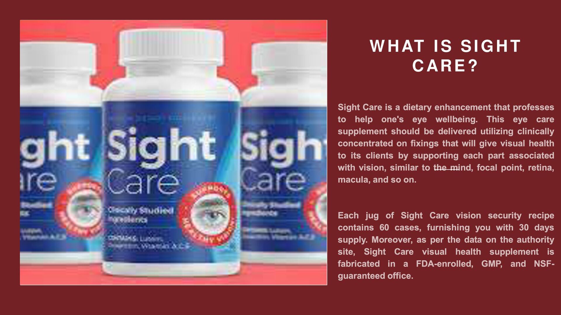 There are various visual perception supplements accessible available and on the web, however one drew our consideration. Sight Care has as of late gotten a ton of consideration for being one of the top vision supplements. The Sight Care vision supplement, as per th...