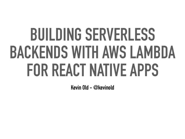 Kevin Old - @kevinold BUILDING SERVERLESS BACKENDS WITH AWS LAMBDA