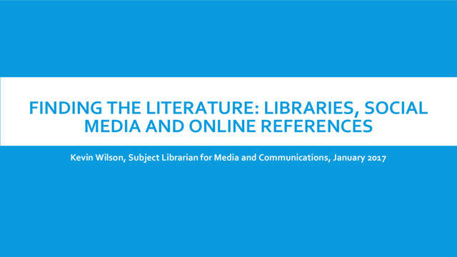 Finding the Literature: Libraries, Social Media and Online References
