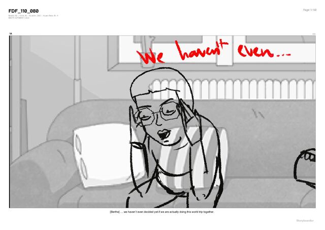 Aspect Ratio: 16 : 9 DRAFT: OCTOBER 7, 2024 Page: 1 / 60 1A 0:00 [Berthe] … we haven’t even decided yet if we are actually doing this world trip together.