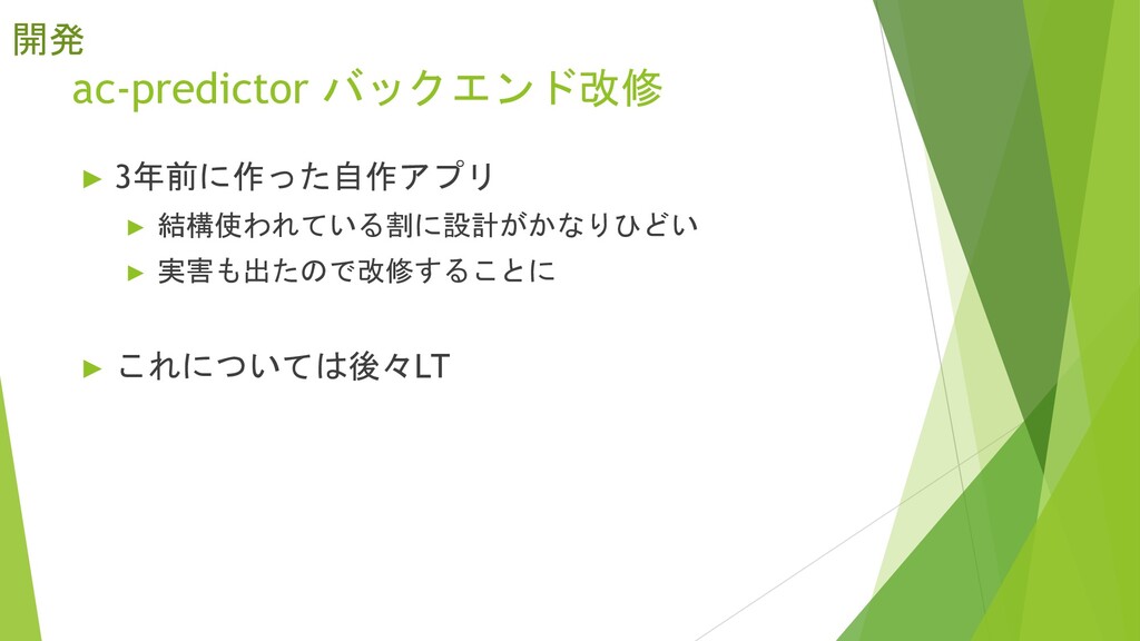 3 4 まとめ 7 6 5 8 9 10 11 12 1 2 3 4 プログラムは どのように動くか? 2年前に作った 自作サービスの mirgation をした話 ゲームとバグと セキュリティ 競技プログラミングの 自動テストについて アルゴリズムたいそう 競プロ部 主催コンテスト 作問 ICPC アジア大会 熱烈精進 ac-predictor バックエンド マイグレーション ac-predictor フロントエンド マイグレーション つ づ き 統計的 難易度予測 (挫折) ICPC 国内予選 熱烈精進 ► 正直あまり満足のいく一年ではなかった ► インプットがなく、実力の向上がなかった ► 競技プログラミング/CTF/開発力について言える ► 時間を浪費していたことが多い。特に秋冬 ► 書かなかったが、後悔しているプロダクトもある ► 来年はもう少し成長できると嬉しい