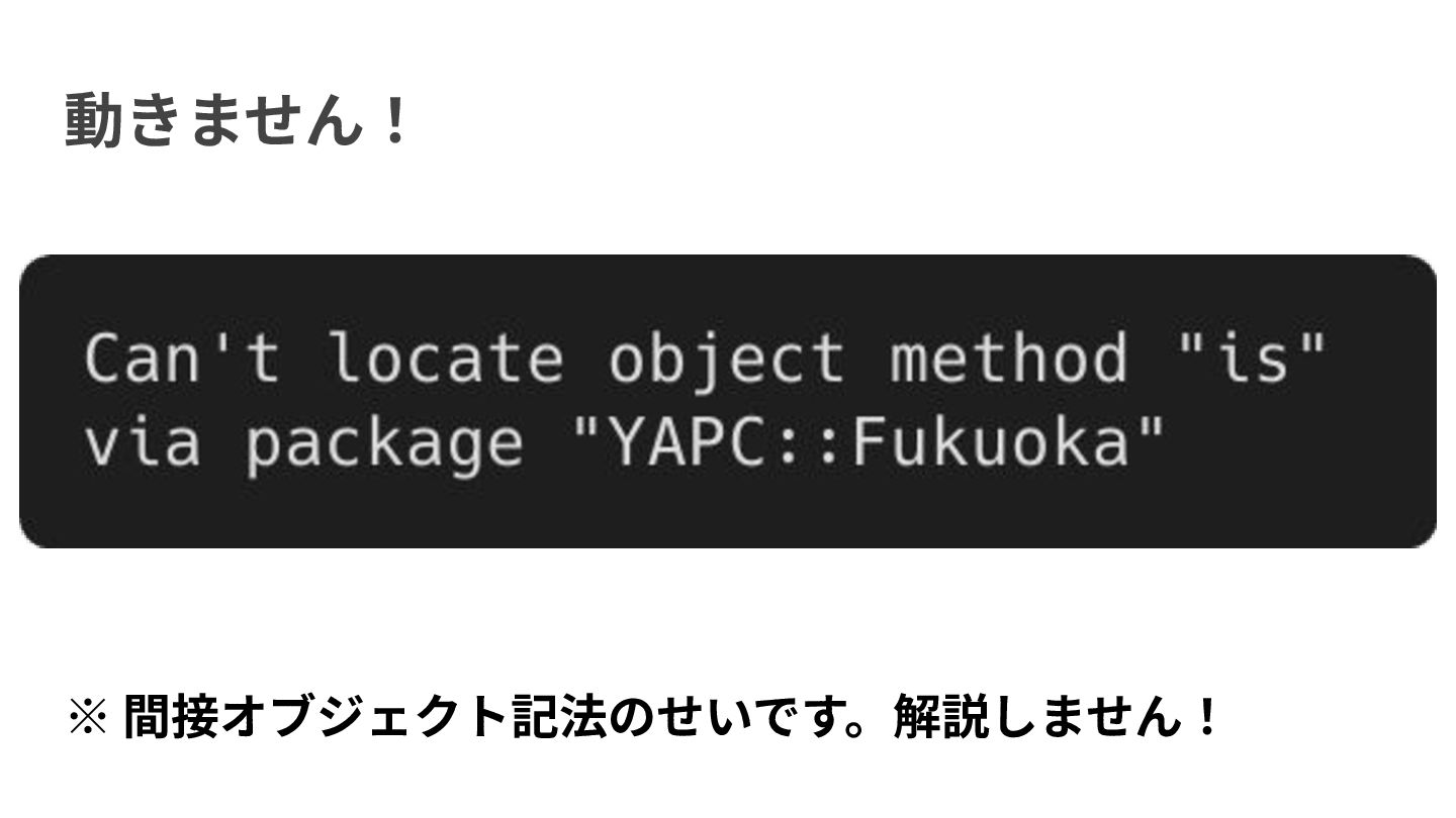 動きません! ※ 間接オブジェクト記法のせいです。解説しません!