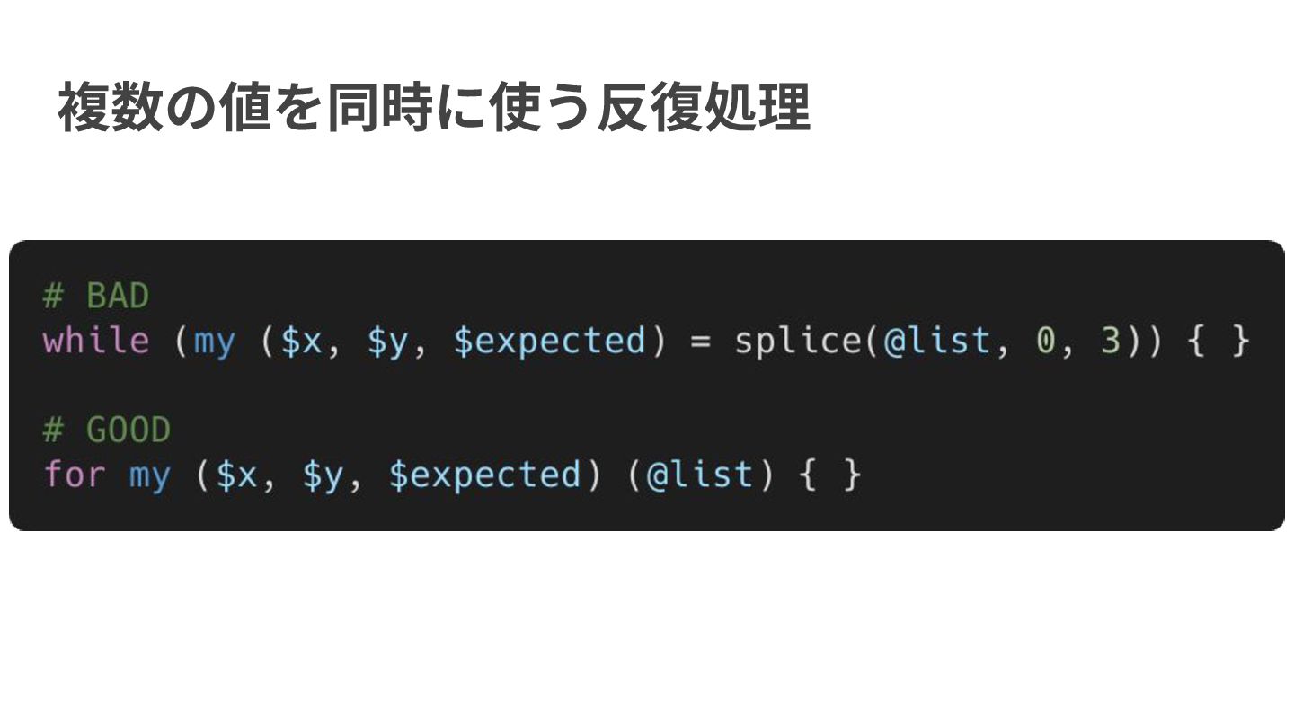 良し悪し判断できない • → Perlのエキスパートでないとダメ