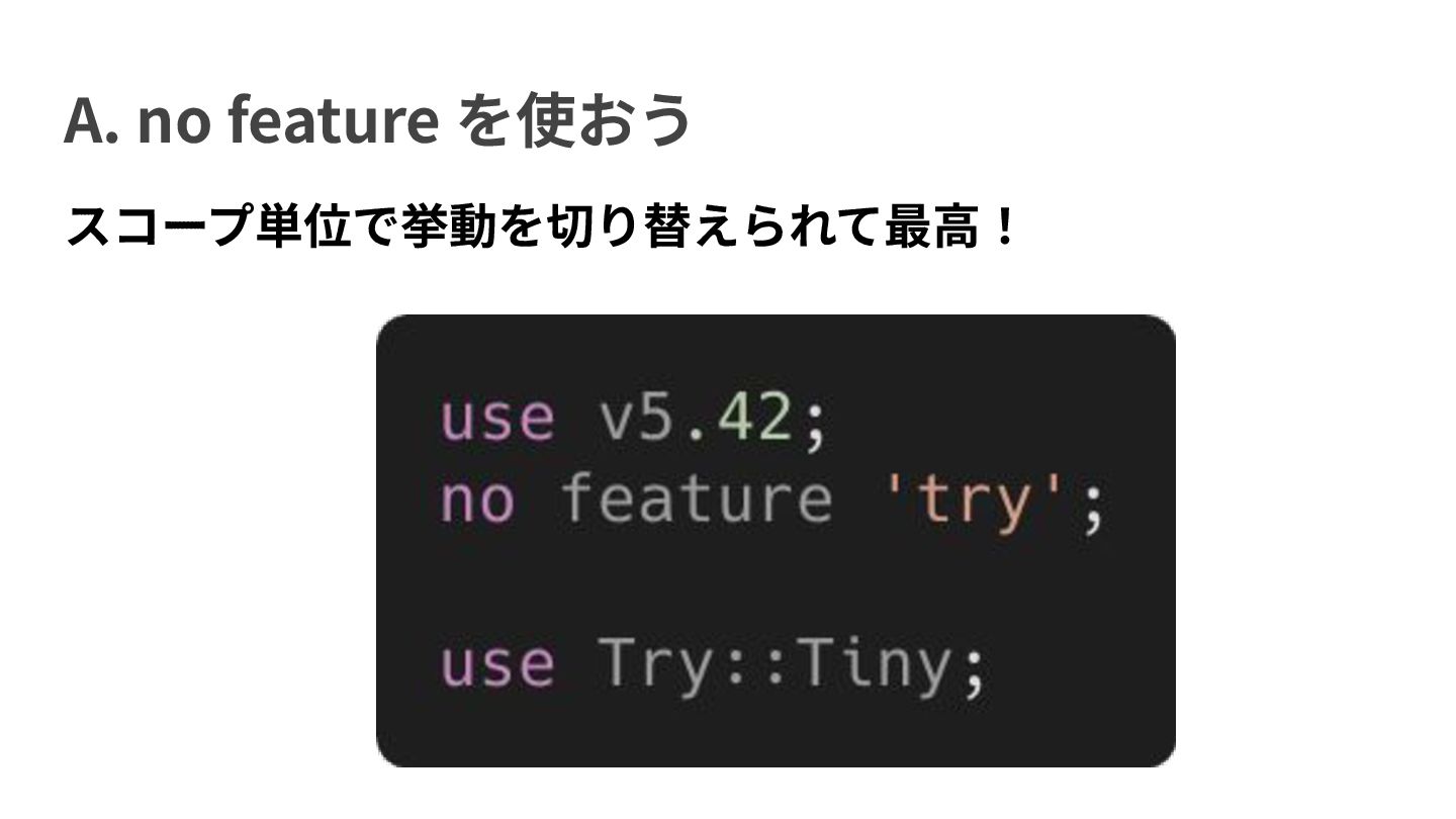 A. no feature を使おう スコープ単位で挙動を切り替えられて最⾼!