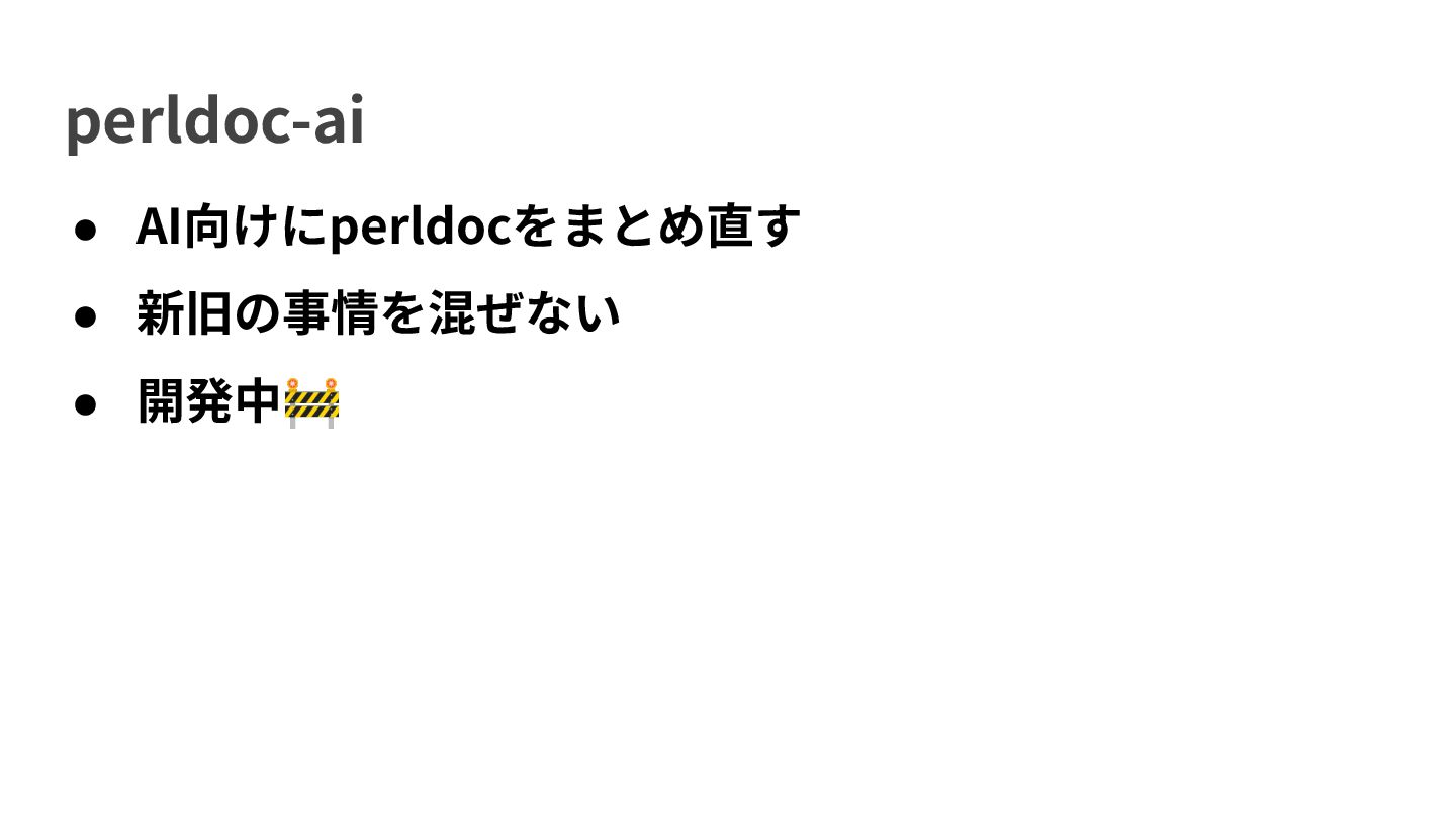 perldoc-ai • AI向けにperldocをまとめ直す • 新旧の事情を混ぜない • 開発中🚧