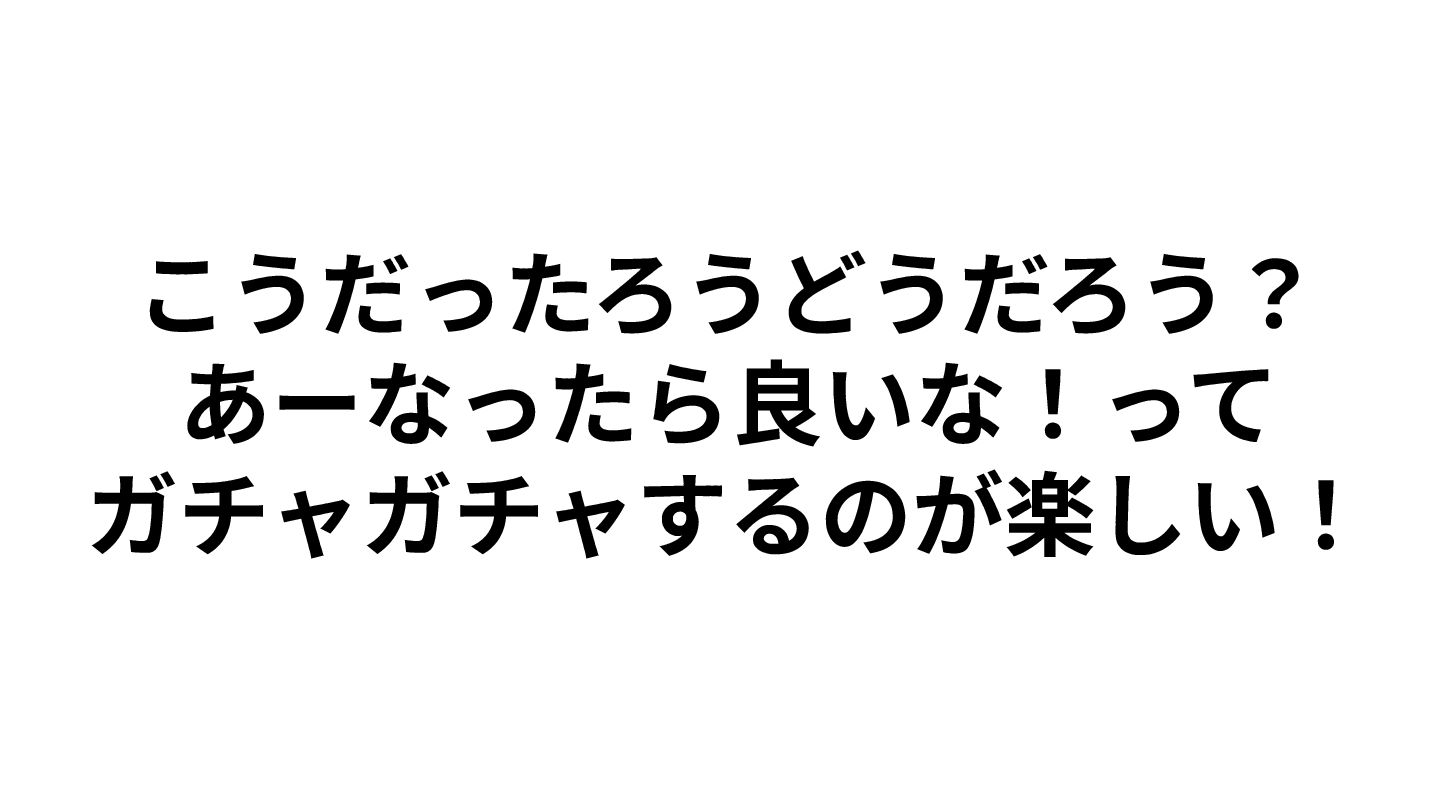 こうだったろうどうだろう? あーなったら良いな!って ガチャガチャするのが楽しい!