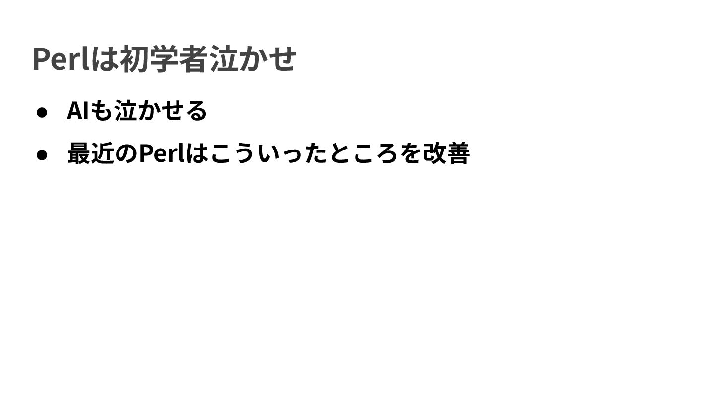 Perlは初学者泣かせ • AIも泣かせる • 最近のPerlはこういったところを改善