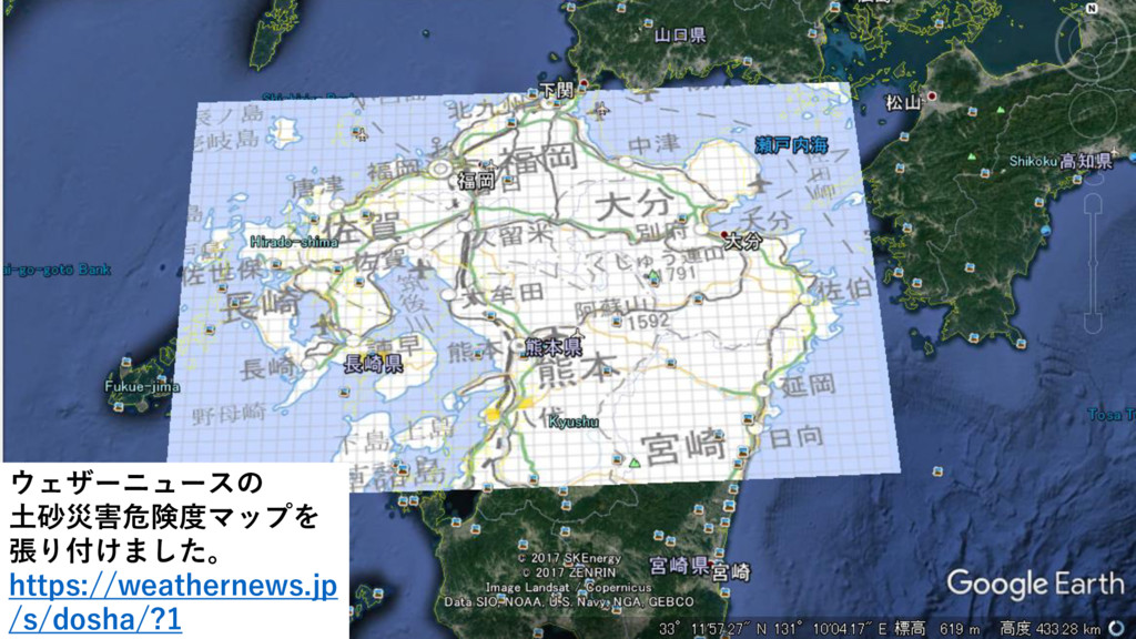 ウェザーニュースの 土砂災害危険度マップを 張り付けました。 https://weathernews.jp /s/dosha/?1