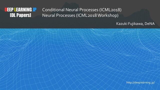 – t • . n IL b – epILhl G i l kIM c ac N P [ L C l e u xL P • 32 2 : 2 23 h – 32 2 : 2 23 32 Ps ou i s ouG rv Neural Processes x C y T C T z x T y C (a) Graphical model y C x C h r C r a z y T x T h r T g a r C T Generation Inference (b) Computational diagram Figure 1. Neural process model. (a) Graphical model of a neural process. x and y correspond to the data where y = f(x). C and T are the number of context points and target points respectively and z is the global latent variable. A grey background indicates that the variable is observed. (b) Diagram of our neural process implementation. Variables in circles correspond to the variables of the graphical ditional stochastic process Q✓ that defines distributions over f(x) for inputs x 2 T. ✓ is the real vector of all parame- ters defining Q. Inheriting from the properties of stochastic processes, we assume that Q✓ is invariant to permutations of O and T. If O0 , T0 are permutations of O and T, re- spectively, then Q✓(f(T) | O, T) = Q✓(f(T0) | O, T0) = Q✓(f(T) | O0 , T). In this work, we generally enforce per- mutation invariance with respect to T by assuming a fac- tored structure. Specifically, we consider Q✓ s that factor Q✓(f(T) | O, T) = Q x2T Q✓(f(x) | O, x). In the absence of assumptions on output space Y , this is the easiest way to ensure a valid stochastic process. Still, this framework can be extended to non-factored distributions, we consider such a model in the experimental section. The defining characteristic of a CNP is that it conditions on O via an embedding of fixed dimensionality. In more detail, we use the following architecture, ri = h✓(xi, yi) 8(xi, yi) 2 O (1) r = r1 r2 . . . rn 1 rn (2) i = g✓(xi, r) 8(xi) 2 T (3) where h✓ : X ⇥Y ! Rd and g✓ : X ⇥Rd ! Re are neural networks, is a commutative operation that takes elements in Rd and maps them into a single element of Rd, and i are parameters for Q✓(f(xi) | O, xi) = Q(f(xi) | i). Depend- ing on the task the model learns to parametrize a different output distribution. This architecture ensures permutation invariance and O(n + m) scaling for conditional prediction. We note that, since r1 . . . rn can be computed in O(1) from r1 . . . rn 1 , this architecture supports streaming observations with minimal overhead. For regression tasks we use i to parametrize the mean and variance i = (µi, 2 i ) of a Gaussian distribution N(µi, 2 i ) for every xi 2 T. For classification tasks i parametrizes and unobserved values. In practice, we take Monte Carlo estimates of the gradient of this loss by sampling f and N. This approach shifts the burden of imposing prior knowl- edge from an analytic prior to empirical data. This has the advantage of liberating a practitioner from having to specify an analytic form for the prior, which is ultimately intended to summarize their empirical experience. Still, we emphasize that the Q✓ are not necessarily a consistent set of conditionals for all observation sets, and the training routine does not guarantee that. In summary, 1. A CNP is a conditional distribution over functions trained to model the empirical conditional distributions of functions f ⇠ P. 2. A CNP is permutation invariant in O and T. 3. A CNP is scalable, achieving a running time complex- ity of O(n + m) for making m predictions with n observations. Within this specification of the model there are still some aspects that can be modified to suit specific requirements. The exact implementation of h, for example, can be adapted to the data type. For low dimensional data the encoder can be implemented as an MLP, whereas for inputs with larger dimensions and spatial correlations it can also include convolutions. Finally, in the setup described the model is not able to produce any coherent samples, as it learns to model only a factored prediction of the mean and the variances, disregarding the covariance between target points. This is a result of this particular implementation of the model. One way we can obtain coherent samples is by introducing a latent variable that we can sample from. We carry out some proof-of-concept experiments on such a model in section 4.2.3. . ditional stochastic process Q✓ that defines distributions over f(x) for inputs x 2 T. ✓ is the real vector of all parame- ters defining Q. Inheriting from the properties of stochastic processes, we assume that Q✓ is invariant to permutations of O and T. If O0 , T0 are permutations of O and T, re- spectively, then Q✓(f(T) | O, T) = Q✓(f(T0) | O, T0) = Q✓(f(T) | O0 , T). In this work, we generally enforce per- mutation invariance with respect to T by assuming a fac- tored structure. Specifically, we consider Q✓ s that factor Q✓(f(T) | O, T) = Q x2T Q✓(f(x) | O, x). In the absence of assumptions on output space Y , this is the easiest way to ensure a valid stochastic process. Still, this framework can be extended to non-factored distributions, we consider such a model in the experimental section. The defining characteristic of a CNP is that it conditions on O via an embedding of fixed dimensionality. In more detail, we use the following architecture, ri = h✓(xi, yi) 8(xi, yi) 2 O (1) r = r1 r2 . . . rn 1 rn (2) i = g✓(xi, r) 8(xi) 2 T (3) where h✓ : X ⇥Y ! Rd and g✓ : X ⇥Rd ! Re are neural networks, is a commutative operation that takes elements in Rd and maps them into a single element of Rd, and i are parameters for Q✓(f(xi) | O, xi) = Q(f(xi) | i). Depend- ing on the task the model learns to parametrize a different output distribution. This architecture ensures permutation invariance and O(n + m) scaling for conditional prediction. We note that, since r1 . . . rn can be computed in O(1) from r1 . . . rn 1 , this architecture supports streaming observations with minimal overhead. For regression tasks we use i to parametrize the mean and variance i = (µi, 2 i ) of a Gaussian distribution N(µi, 2 i ) for every xi 2 T. For classification tasks i p