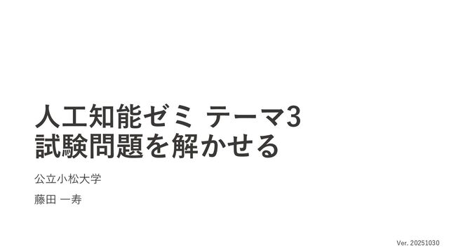 人工知能ゼミ テーマ3 試験問題を解かせる 公立小松大学 藤田 一寿 Ver. 20251030