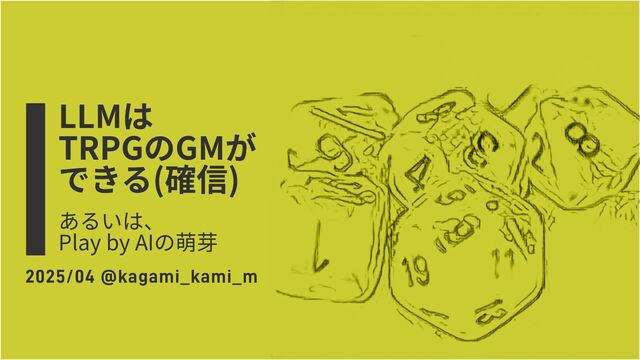 LLMは TRPGのGMが できる(確信) あるいは、 Play by AIの萌芽 2025/04 @kagami_kami_m speaker