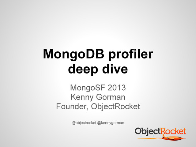 ObjectRocket Founder, Kenny Gorman, will present a deep dive into the MongoDB profiler. The MongoDB profiler is a powerful tool for analyzing and improving performance on a MongoDB system. He will show everything from the very basics to advanced usage. He will cover how to use the Aggregation Framework in conjunction with the profiler, profiler analytics, query tuning, and response time analysis.