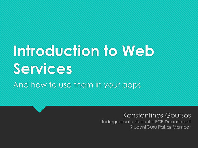 a way to provide data to your app reduces complexity and improves maintainability Separating data from the front-end makes it easier to work with a team When done right, services are accessible from any platform as they are based on open standards
