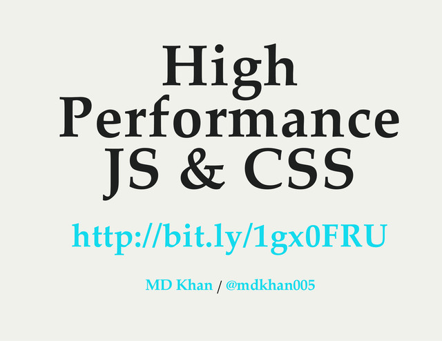 The goal of this talk is not to save the marriage rather to make the marriage most enjoyable, highly interesting and tremendously performing. High performance doesn’t have to some miracle that somehow works. After this talk, you would be the guy who rocks for high performance JavaScript and CSS. And you will believe, high performance code could reusable, readable and maintainable.